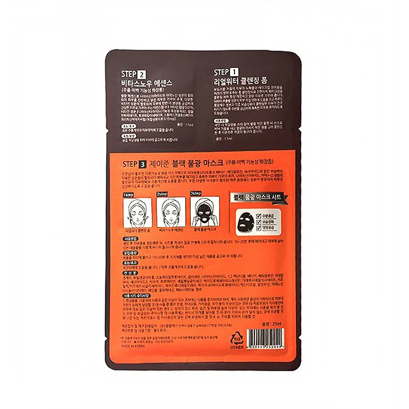 JAYJUN Real COSMETIC Water Brightening Black Mask Pack 3STEP Refine to Shine (10pcs)