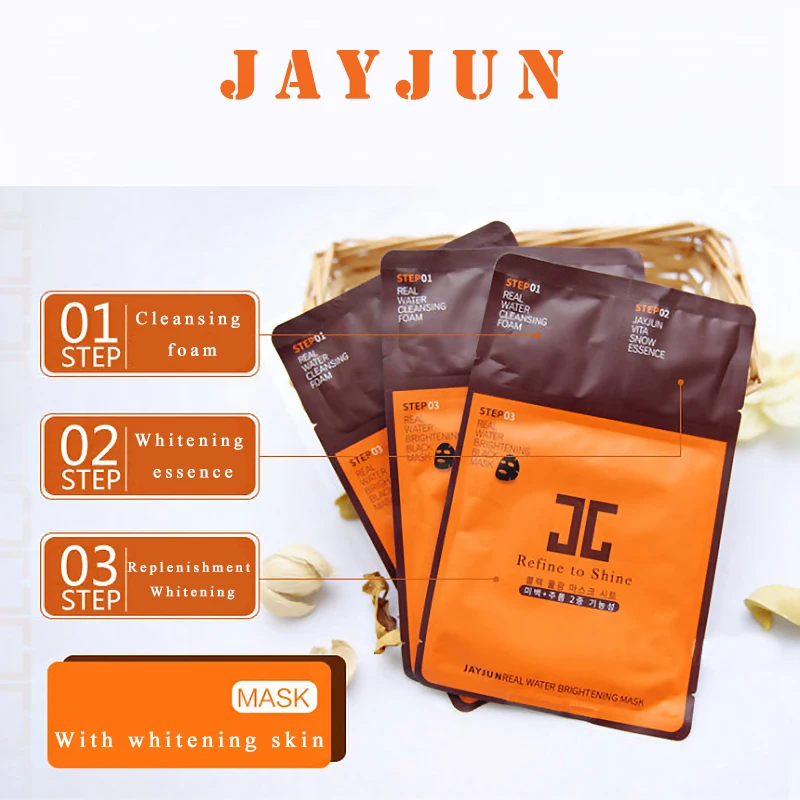 JAYJUN 3 Steps Real Water Brightening Black Facial Mask Pack 10Pcs Refine to Shine- Keep Your Skin Healthy GlowWith Niacinamide known as brightening ingredient, this Brightening Mask helps to make your skin clear & glow by preventing the generation of melanin inside of the skin. Also, this mask contains Adenosine ingredient that has a lifting effect that helps to make the skin elastic.- Enhance Moisturizing & Nourishing EffectsThis Brightening Mask has an excellent hydrating ingredients such as Hyaluronic Acid, Betaine, Beta-Glucan and Ceramide, so that it helps to make rough and dry skin moist & smooth all day long with those ingredients. Also, it contains a variety of Vitamins and Minerals that provide nutrients to the skin, which keeps your skin healthy.- Charcoal Black Mask SheetThis Charcoal Black Mask Sheet contains high quality charcoal made from oak. Porous charcoal attaches to skin wastes or sebum to clarify skin, and it also contains high levels of minerals to improve the skin's absorption of the essence from the mask sheet.