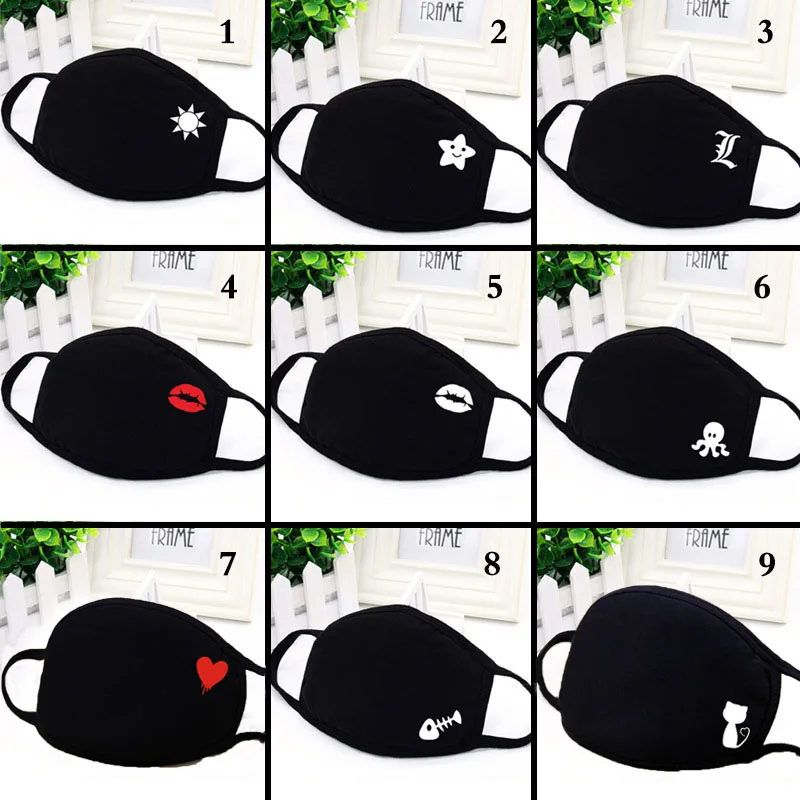 | 13 Style Black Party Supplies Cotton Cartoon Mouth Mask Anti Dust Unisex Printing Mouth Muffle 1Pcs |