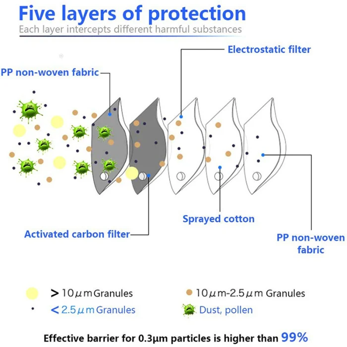 High Quality 5 Layers Activated Bamboo Carbon Prevent Anti Formaldehyde Bad Smell Bacteria Proof Face Mouth Mask