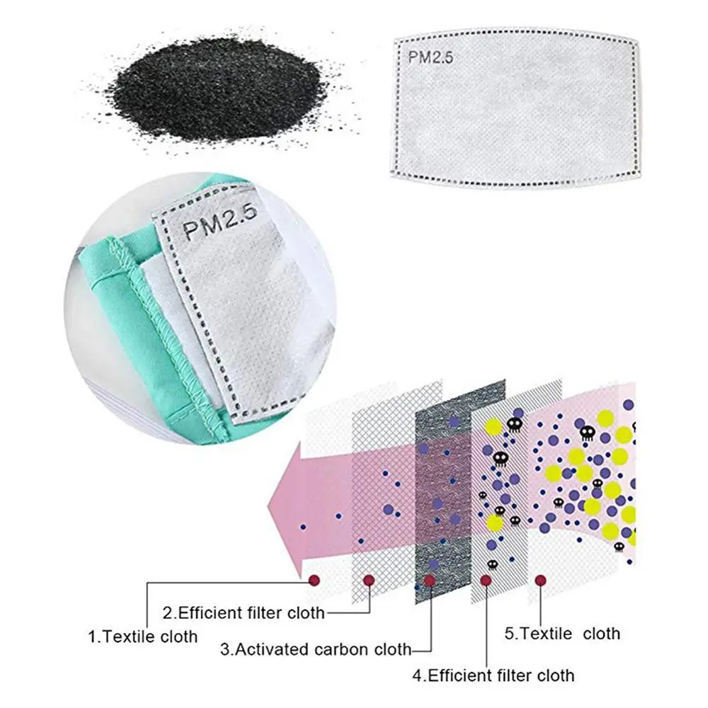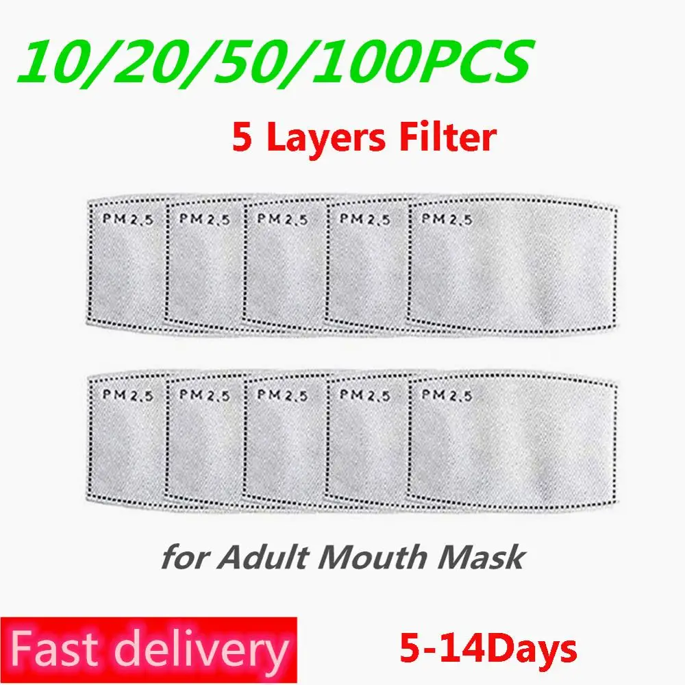 | 50/100pcs 5 Layers Filter Face Masks PM2.5 Activated Carbon Face Mask Filter Breathing Insert Protective for Adults Kids |