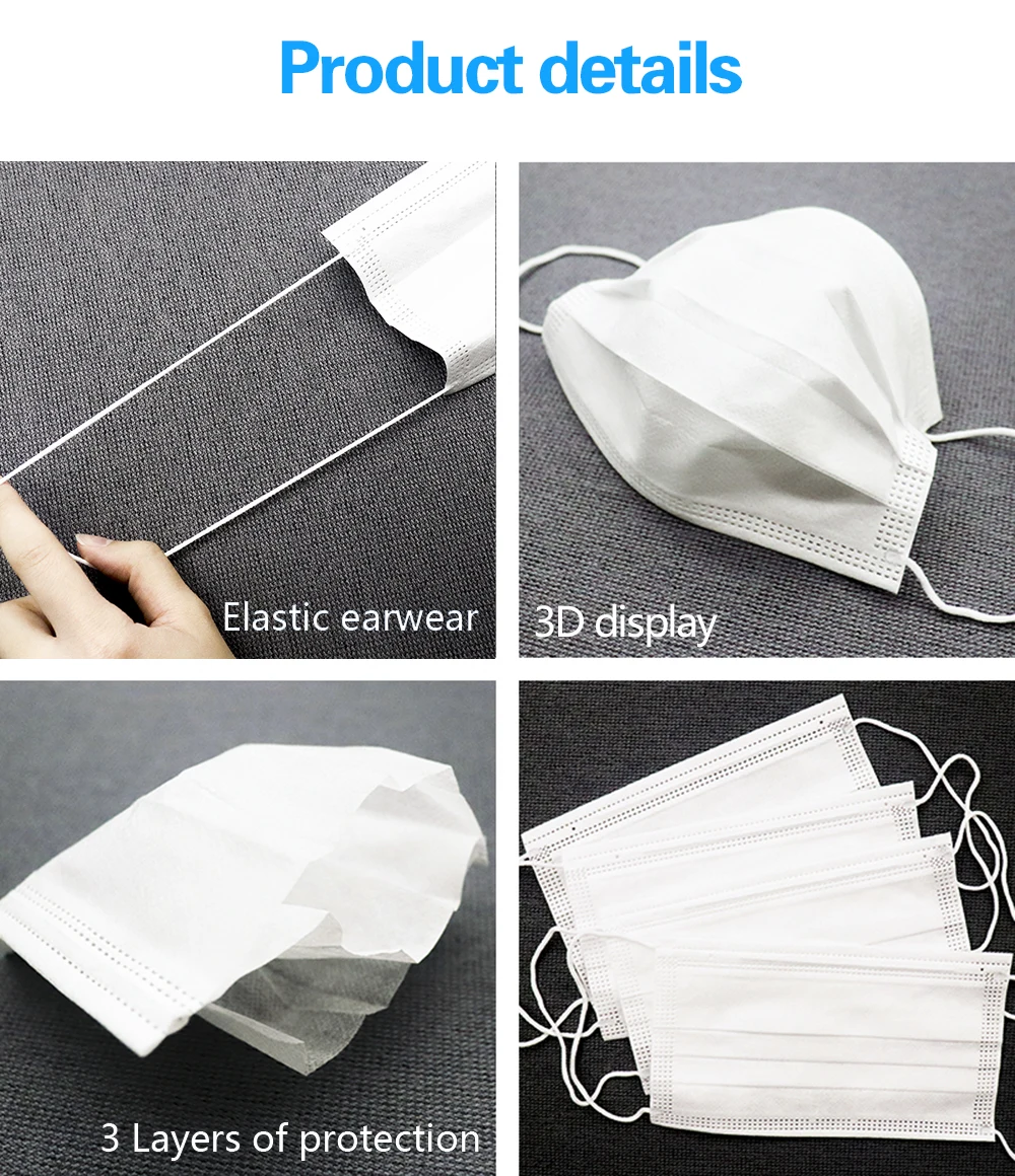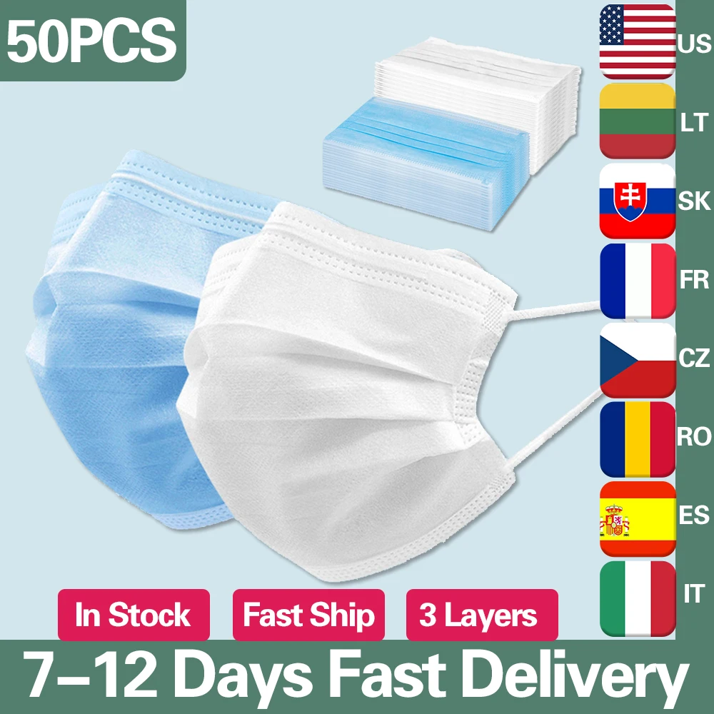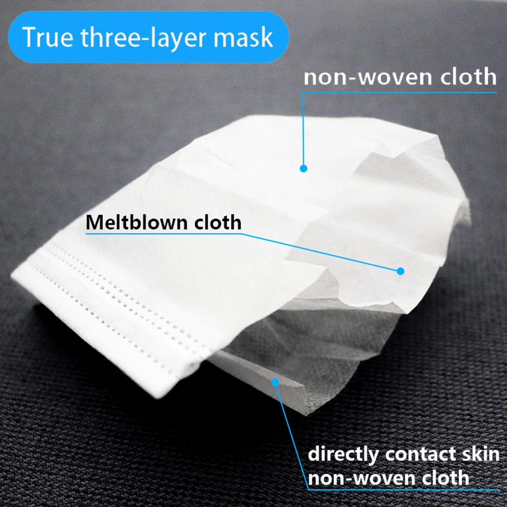 | 50PCS 3 Layers Earloop Face Masks Safely Soft Breathable Mouth Mask Dust Mask Non Woven Disposable Adult Dust Filter Masks |