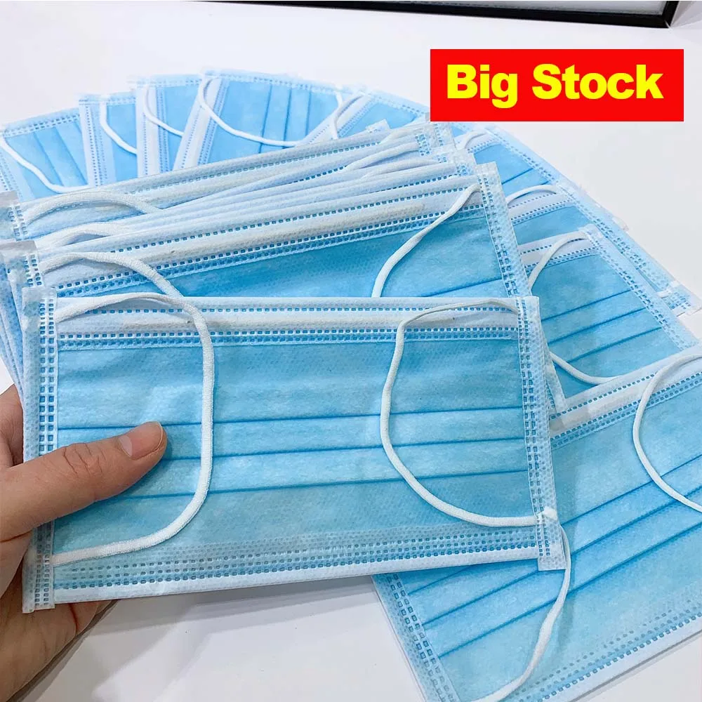 Fast delivery Hot Sale 50pcs Face Mouth Mask 3-layers mask Non Woven Disposable Anti-Dust Meltblown cloth Masks Earloops Masks