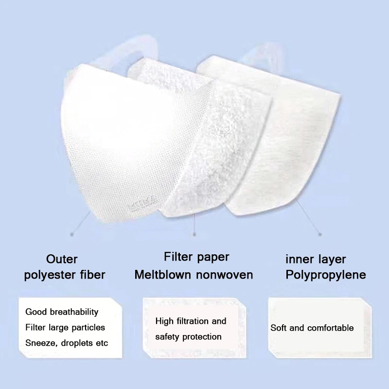10 pieces 5 Layers PM2.5 KN95 Activated Carbon Filter for Mouth Mask Dust Mask Filter Protective Filter Media Flu-proof Filter