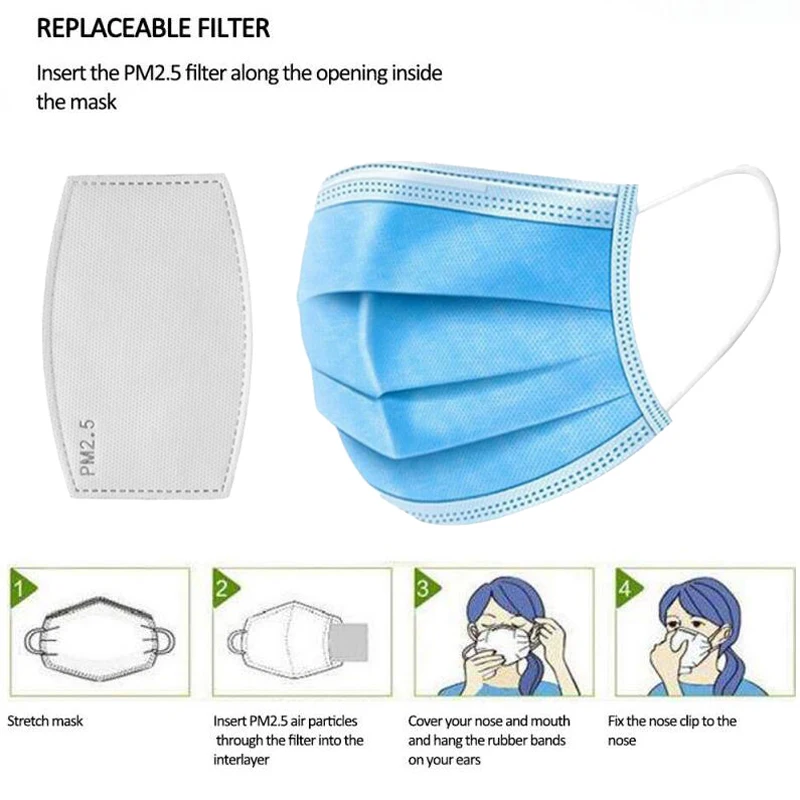 200PCS/SET 4 Layers Disposable Anion Health Protection Mask Filter Gasket Anti Dust Mouth Face Mask Replacement Blue FiltersBuy Now On Aliexpress