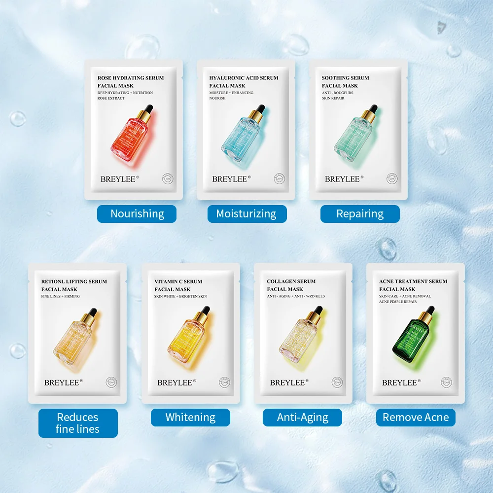 BREYLEE Face Mask Collagen Facial Sheet Mask Retinol Acne Treatment Serum Whitening Moisturizer Skin Care Anti Aging Vitamin C