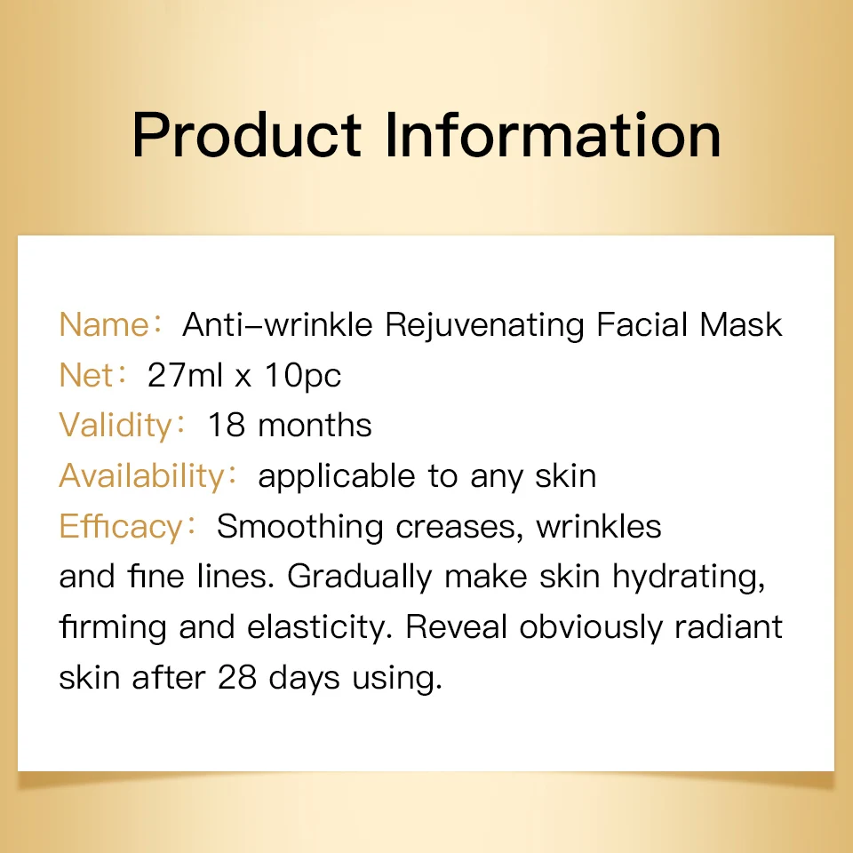 100% Original 24K golden mask Anti wrinkle facial mask for face care tighten skin, whitening face masks for face lifting firming