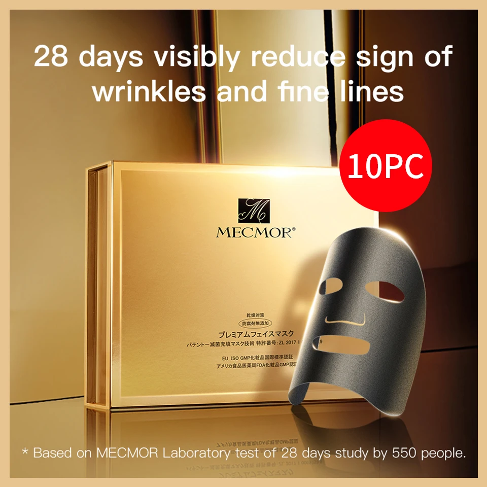 MECMOR Anti Wrinkles Beautifying & Rejuvenating Biological Facial Mask | Organic Natural Additive Free | Anti-ageing, Firmness Elasticity Pregnant Women Usable 10PCs