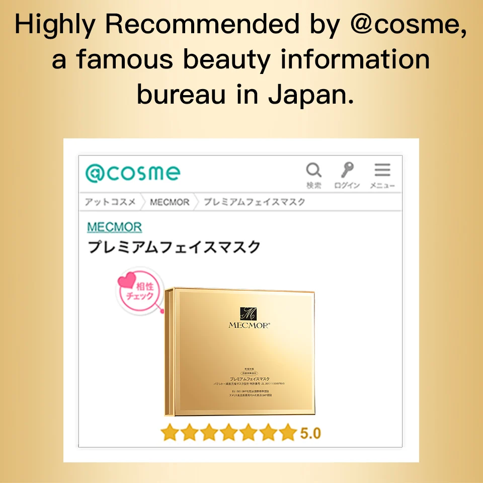 With its excellent quality and consumers' praise, MECMOR has successively won the honors, such as "Hot Brand of High-end Mask", "Annual Most Potential High-end Mask Brand", "The Most Popular Brand in 2016", "The Appointed Skin Care Brand for Sunshine Award", and "Excellent National Cultural Inheritance Enterprise", which were awarded by many organizations and media.