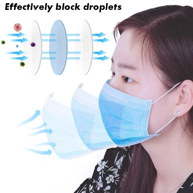 Fast Delivery Hot Sale 3-layer Mask 50pcs Face Mouth Masks Non Woven Disposable Anti-Dust Meltblown Cloth Masks Earloops MasksBuy Now On Aliexpress
