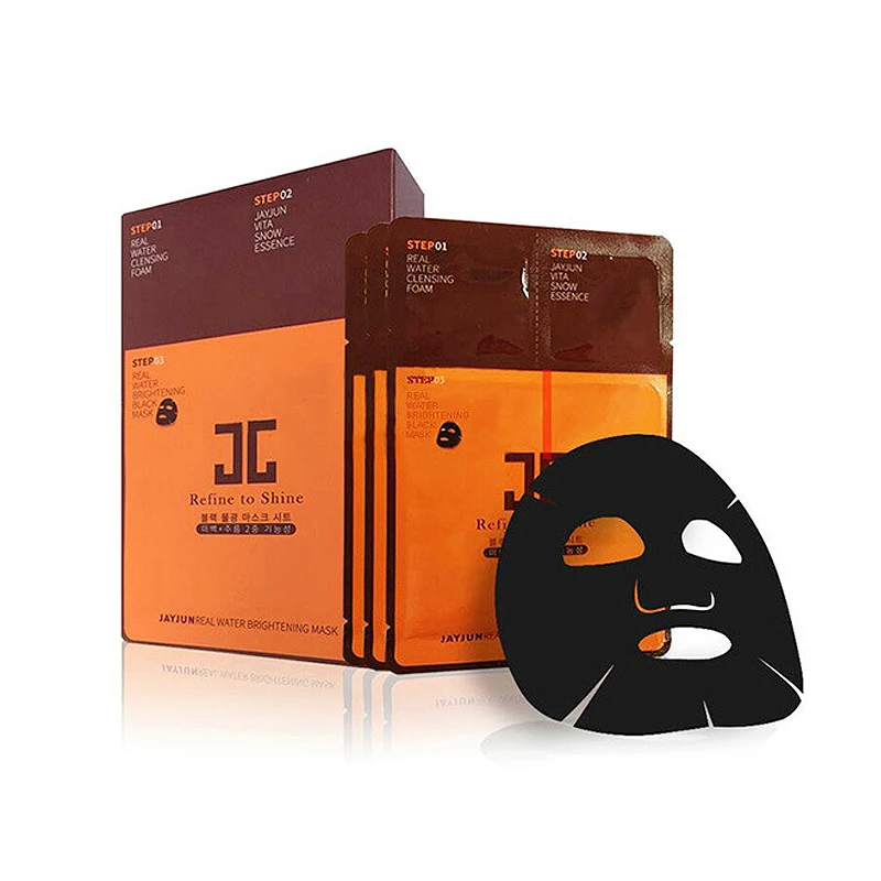 JAYJUN 3 Steps Real Water Brightening Black Facial Mask Pack 10Pcs Refine to Shine- Keep Your Skin Healthy GlowWith Niacinamide known as brightening ingredient, this Brightening Mask helps to make your skin clear & glow by preventing the generation of melanin inside of the skin. Also, this mask contains Adenosine ingredient that has a lifting effect that helps to make the skin elastic.- Enhance Moisturizing & Nourishing EffectsThis Brightening Mask has an excellent hydrating ingredients such as Hyaluronic Acid, Betaine, Beta-Glucan and Ceramide, so that it helps to make rough and dry skin moist & smooth all day long with those ingredients. Also, it contains a variety of Vitamins and Minerals that provide nutrients to the skin, which keeps your skin healthy.- Charcoal Black Mask SheetThis Charcoal Black Mask Sheet contains high quality charcoal made from oak. Porous charcoal attaches to skin wastes or sebum to clarify skin, and it also contains high levels of minerals to improve the skin's absorption of the essence from the mask sheet.