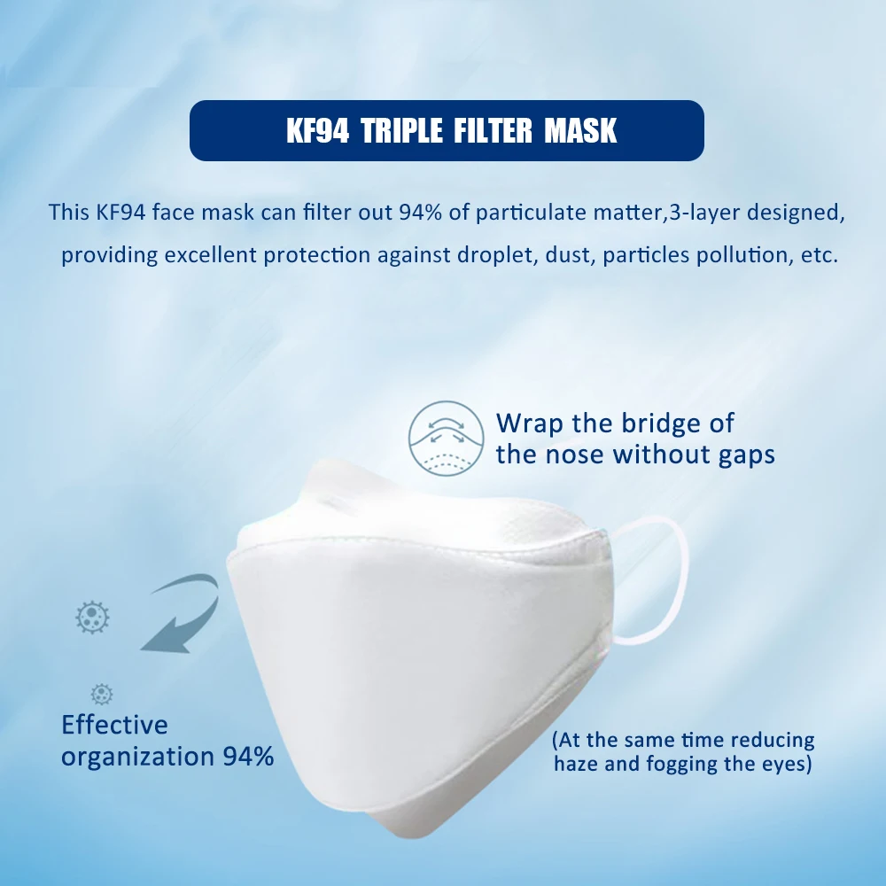 This KF94 face mask can filter out 94% of particulate matter, 3-layer designed, providing excellent protection against droplet, dust, particles pollution, etc.