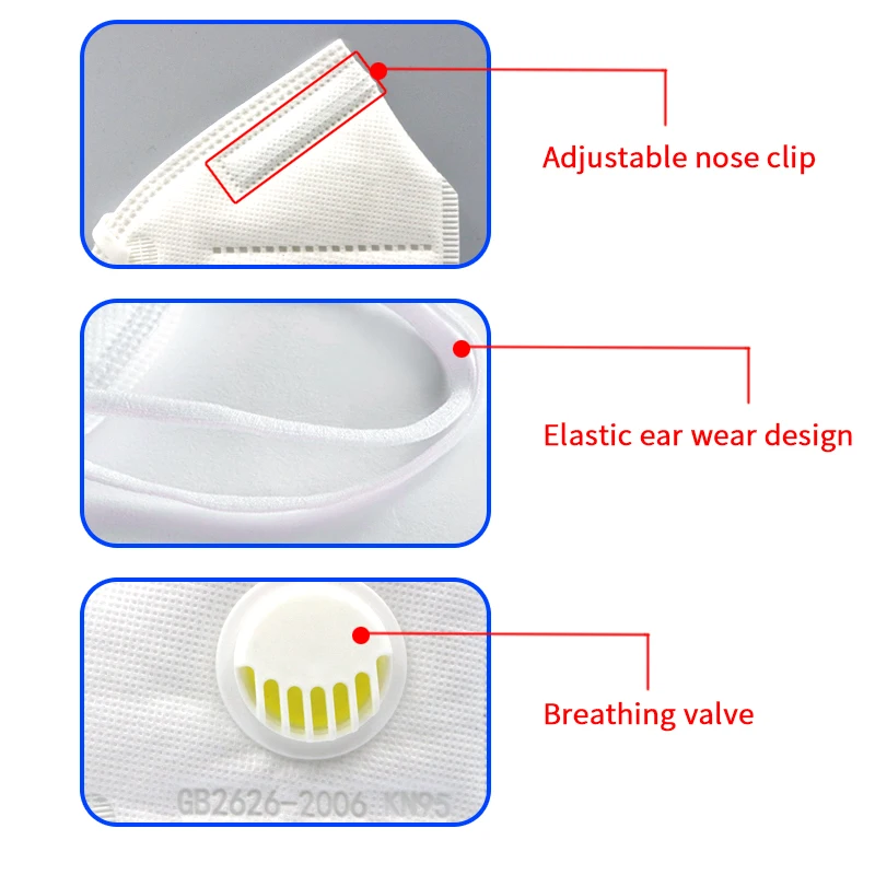 Features:It can filter out more than 95% of exhaust, dust, chemicals, particles, pollen, smoke and fumes, great for many occasions.Comes with an exhalation valve to reduce heat and humidity build-up inside the respirator, excellent permeability.With an adjustable nose clip, it helps effective seal and prevents fogging, keeps the mask away from slipping.Flexible and elastic knitted ear straps relieve ear discomfort, convenient and comfortable to wear.
