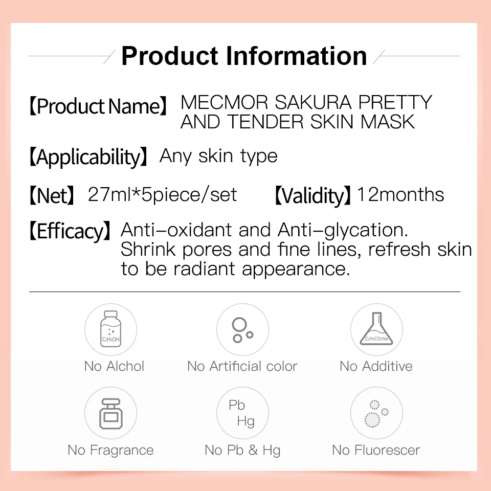 | SAKURA Facial Mask Anti-oxidant Anti-glycation Hydrating Brightening MECMOR Additive Free Organic Natural Face Sheet |
