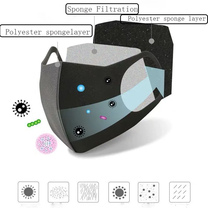 Material: waterproof fabricApplicable gender: both men and womenColor: blackSize: average sizeItem type:PM 2.5 special sponge mouth maskMaterial : New organic polymer spongeFunction : Anti-dustItem Type : MasksFeatures: 1.NEW TECHLONOGY MATERIAL -- New organic polymer sponge,different from commom one, it can filter tiny particle in the air due to its three - dimensional network structure.Soft,thin and breathable, great for summer wear 2.HEALTH & SAFETY -- Sealed package,100% clean and healthy.Every Sponge PM2.5 mouth mask is strictly disinfected and sterilized by spectrum.Automatical and disposable vacuum packing.So there may be a little disinfectant smell, it will disappear when you put it on ventilated place or wash it by hand 3.ECONOMIC & DURABLE -- Not disposable mask. Adopt aeronautical organic material,anti-allergic. Washable for 3-8 times. Washing will not reduce the effect of dustproof,more economic and ecofriendly than disposable mask 4.HUMANIZED DESIGNED -- Perfectly attach onto face with great elastic ability,soft but always keeps shape. 2mm thickness,very breathable,will not cause to oxygen deprivation,breath hard and stiflingly hot.Comfortable and Fashion 5.FUNCTION -- Different from commom mask whose working principle is using multilayers to build net structure to block dust, Sponge PM2.5 mouth mask is made of polyurethane which itself is 3D network structure,after precisely sewing processing,it became to a high-density space obstacles for dust whose dust blocking rate reached to 99% and it is of strong defense to pollen,sick virus, dust and so on .Package Content: Mouth mask * 1pcsIs it just a pieace of sponge ? Sponge PM2.5 mouth mask is not commom sponge mask, it is made of a kind of new organic polymer sponge,which can filter tiny particle in the air due to its three - dimensional network structure.Its dust blocking rate reached to 99% and it is of strong defense to pollen,sick virus, dust and so on.Dose it smell ? PM2.5 mouth mask is for personal skin care protection product,safety and health is the most important.Every PM2.5 mouth mask is strictly disinfected and sterilized by spectrum.Automatical and disposable vacuum packing.So there may be a little disinfectant smell, it will disappear when you put it on ventilated place or wash it by hand.It is so thin,will it be broken easily ? Absolutely No.Although it is thin,it is of strong elasticity.After test, you can pull it to 60cm and it still keep in good condition, so as long as you wear it in commom way and don/'t pull it with brute force,it will not be broken easily.Please be kindly noted,the listed product is produced and distributed abroad and subject to the laws of its country of origin.
