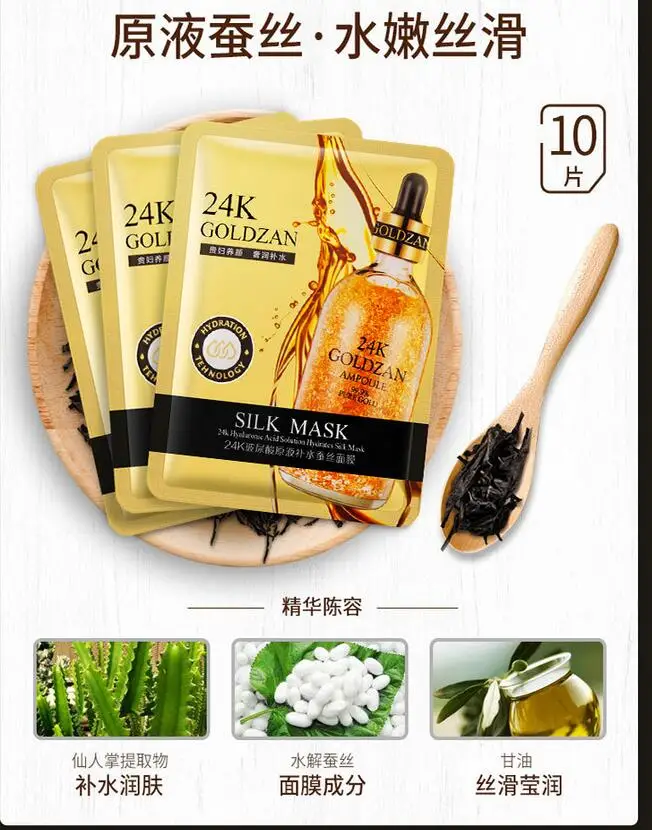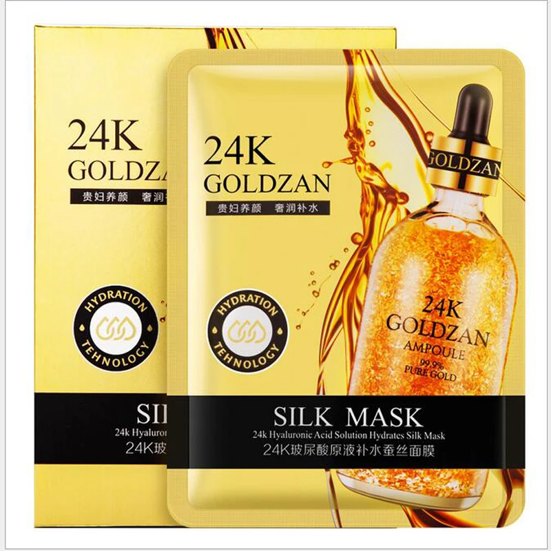 | 24K hyaluronic acid face mask gold foil essence hydrating silk mask whitening moisturizing skin care products 30pcs |