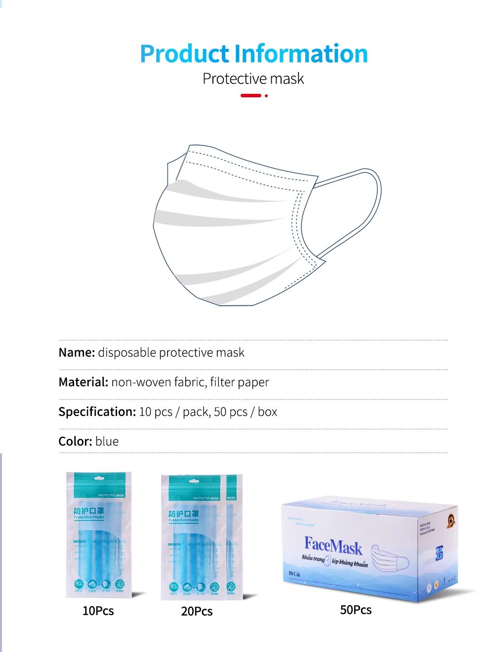 | 3 Laye Mask dust protection Masks Disposable Face Masks Elastic Ear Loop Disposable Dust Filter Safety Mask Anti-Dust |