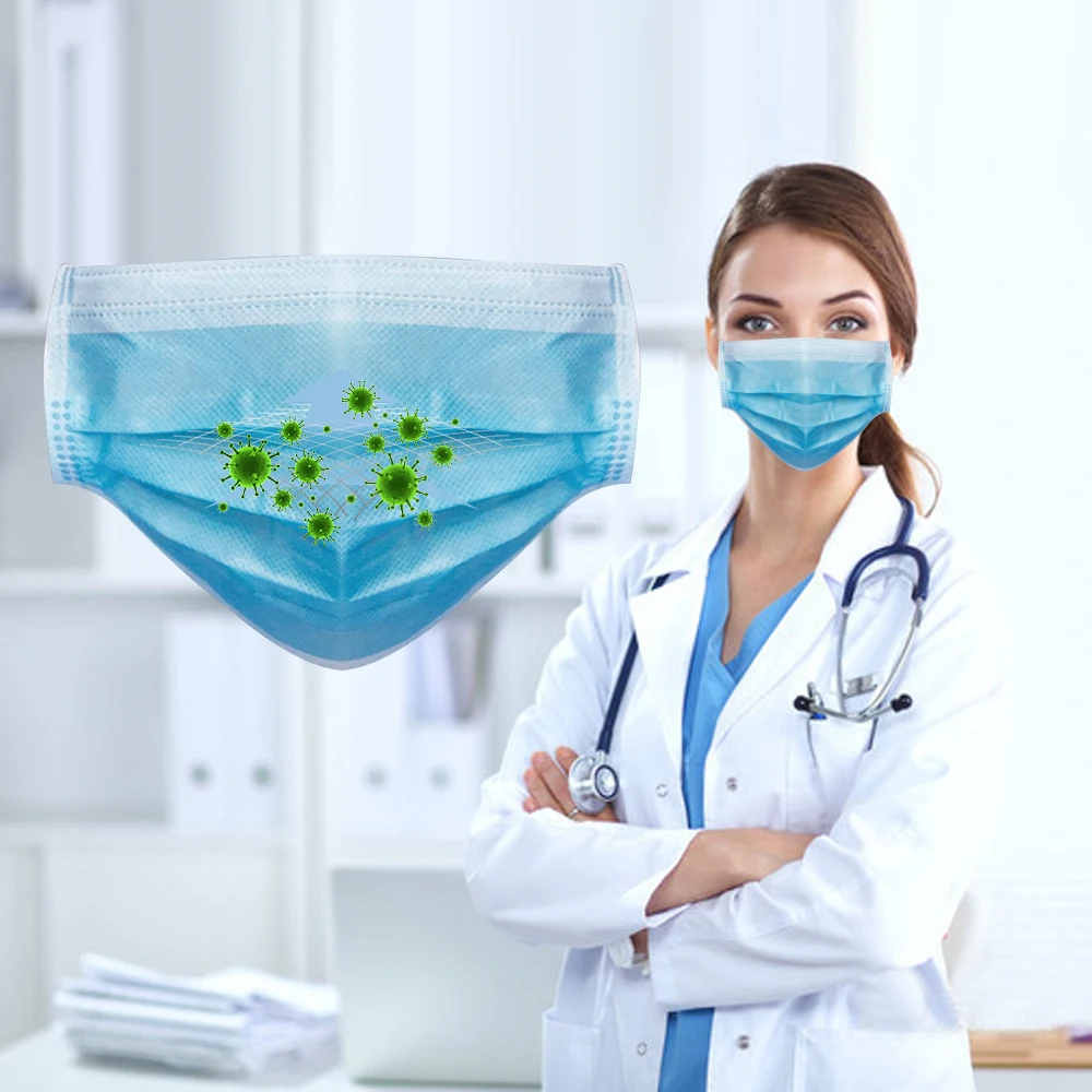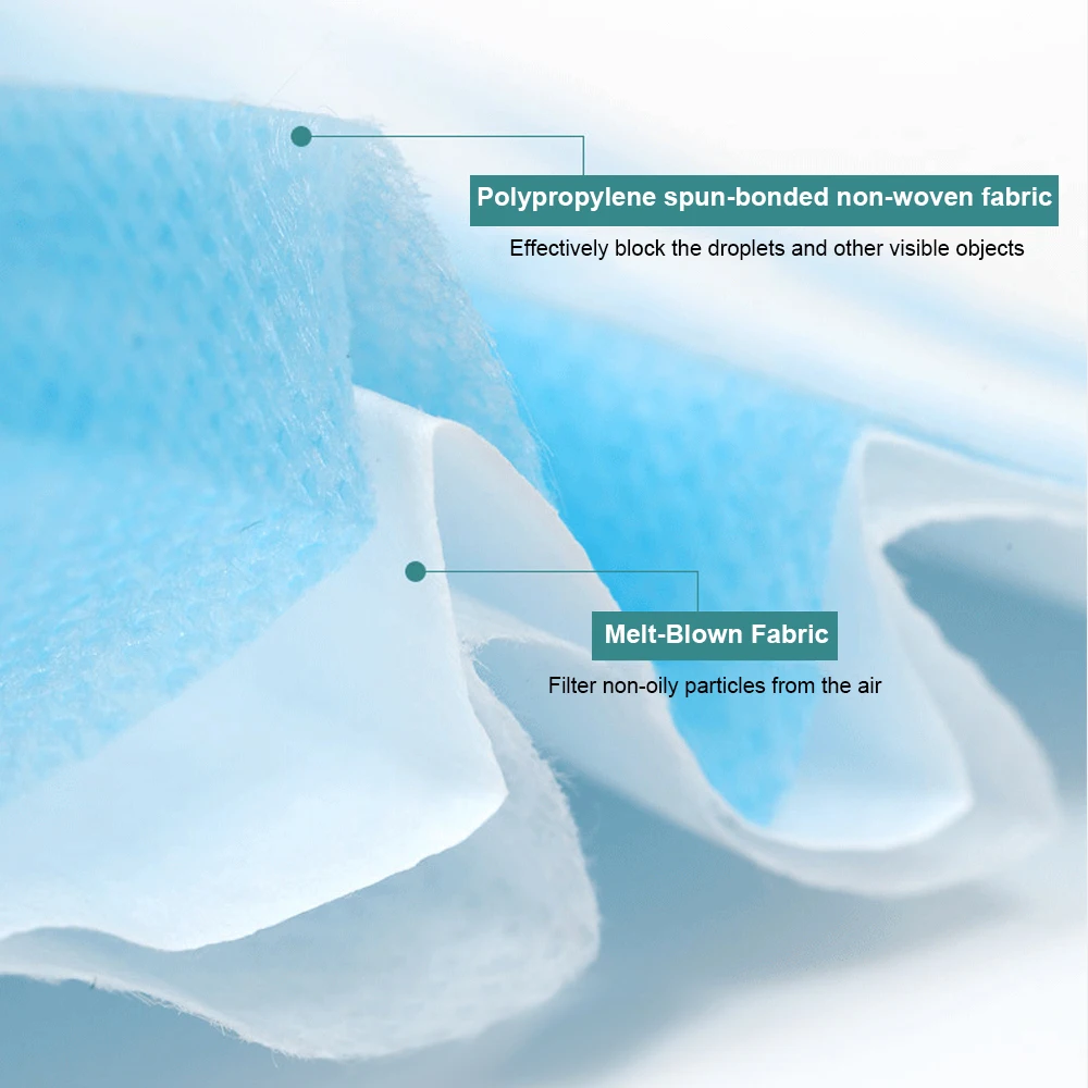 | 50Pcs Personal disposable Protective Mask 3 Layers Non Woven Meltblown cloth Dustproof Maldehyde Prevent Face Earloop Mask |