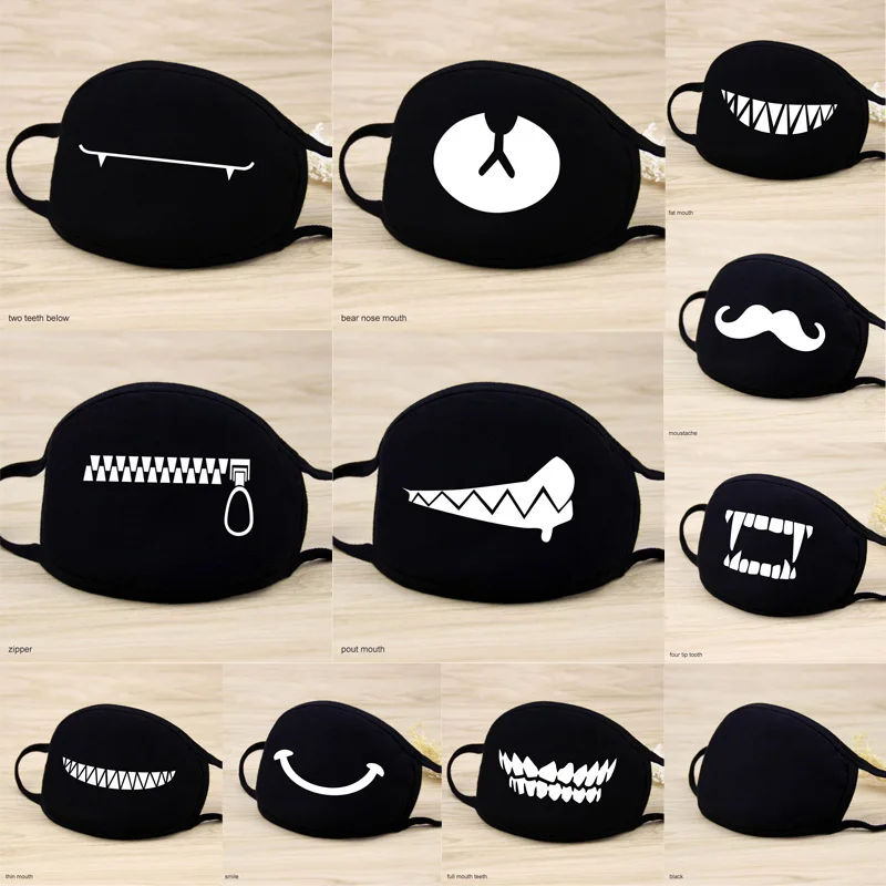 1 Pcs Cotton Masks Keep Warm Cartoon Funny patten Face Mouth Mask Unisex banquet party Mouth Muffle Respirator black 12 Style