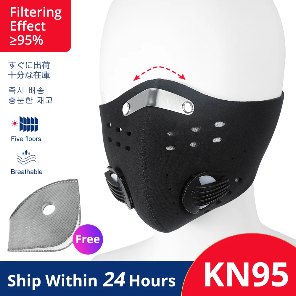 | Dust MasKs N95 Cycling Face PM 2.5 Anti-Pollution Filter Bike Masks Activated Carbon Breathing Valve Sport Masks With 2 Filter |