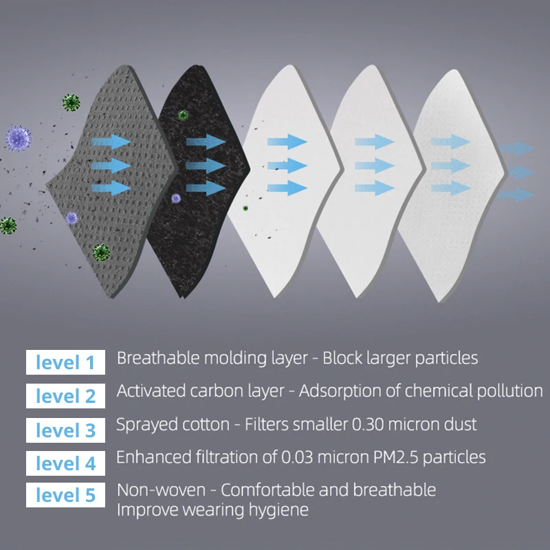 5 Layer Filtration PM2.5 KN95 Filter Paper Anti Haze Mouth Masks Anti Dust Masks Activated Carbon Filter Paper Health Care