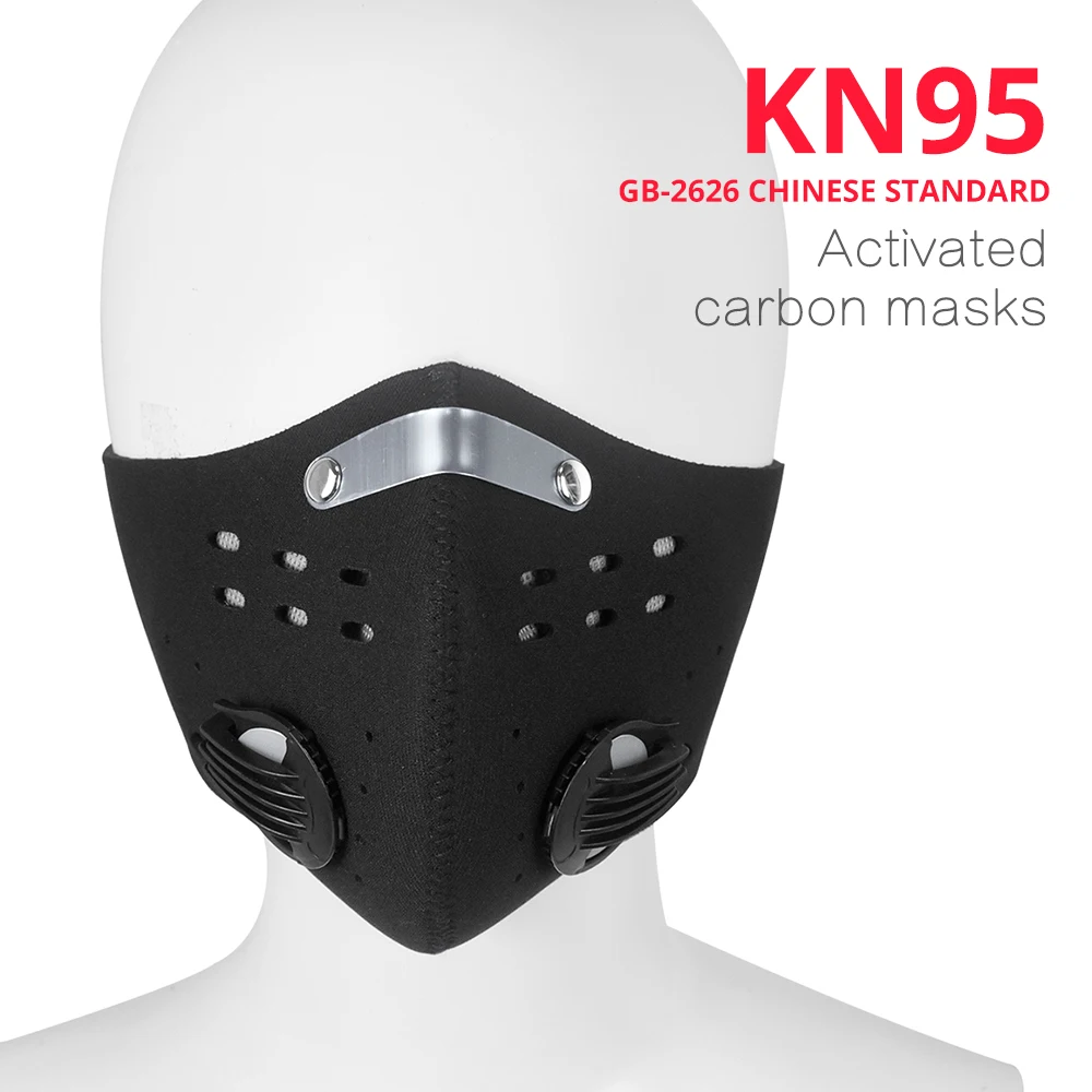 Dust masks Filter Bicycle PM 2.5 Activated Carbon Breathing Valve Masks With 2 Filter Cycling Face Masks KN95 Anti-Pollution