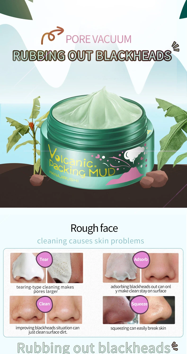 1.This cleansing mask is designed to deal with blackheads, clear pores, diminish harmful substance, cleanse skin, supplement natural minerals and reveal a refreshed, purified complexion.2.Formulated with Moroccan volcanic clay, layers construction effectively absorb dirt and oil on face, diminish aged keratin, tighten up and improve skin elasticity.3.Advanced formula composed of bentonite, shrink pores, prevent premature aging, slow down the appearance of fine lines, even skin tone and texture, makes skin smoother and younger.4.Alcohol free, dye free, fragrance free, safe and gentle, suitable for all skin types, dry skin, oil skin, combination skin, especially for sensitive skin.5.Gently exfoliate aged keratin, absorb excess oil, toxins for a softer feel and glowing appearance.