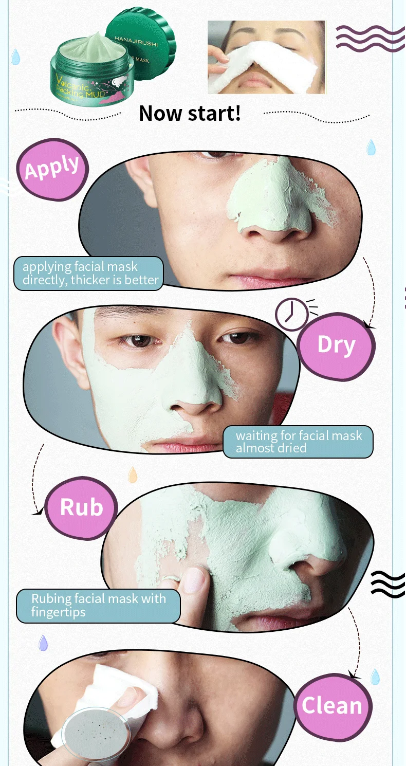 Applyapplying facial mask directly, thicker is betterDrywaiting for facial mask almost driedRubRubing facial mask with fingertipsCleanCleaning blackheads with cotton pads or acne pinFrequency: 1-3 times a week(sensative skin 1-2 times every 2 weeks ) Getting rid of blackheads is a repeated process, and needs insisiting on a period of time(over 28days), and keeping positive skincare habit and avoiding touching face with hands frequently. 📜【Suit for】: Suitable for dry, oily and combination skin. Especially suitable for large oil fields, dull and rough, enlarge pores skin.