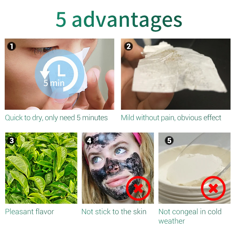 | LANBENA Face Mask Blackhead Remover Serum Skin Care Pore Minimizer Serum Green Tea Deep Cleaning Strip Peeling Acne Treatment |